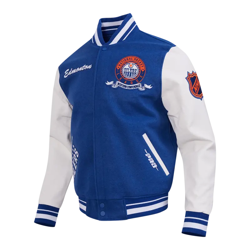 NHL EDMONTON OILERS CLASSIC WOOL MEN’S VARSITY JACKET (DODGER BLUE\/WHITE)