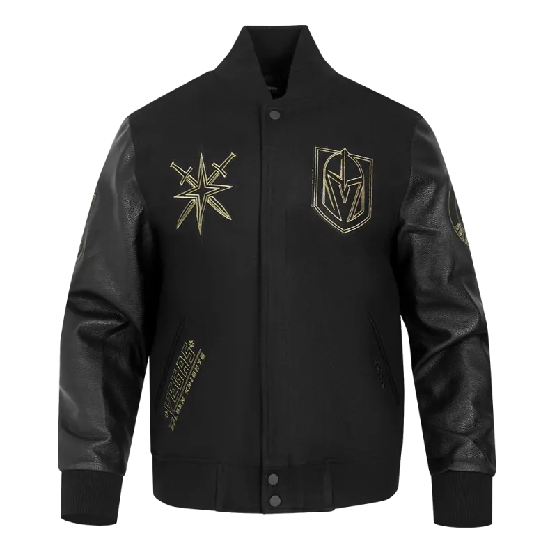 NHL VEGAS GOLDEN KNIGHTS BLACK \u0026 GOLD MEN’S WOOL VARSITY JACKET (BLACK)