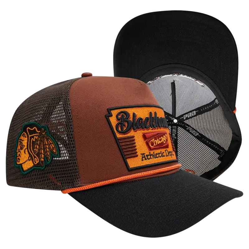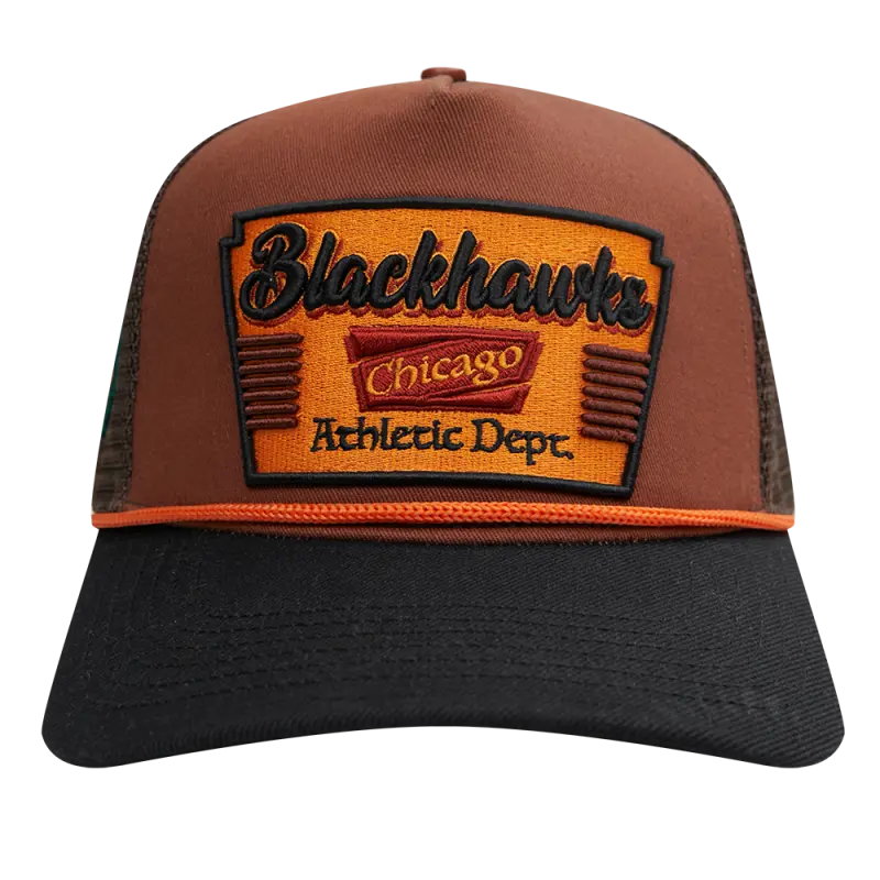 NHL CHICAGO BLACKHAWKS INSIGNIA WOOL 2 TONE PINCH FRONT TRUCKER (RUST\/BLACK)