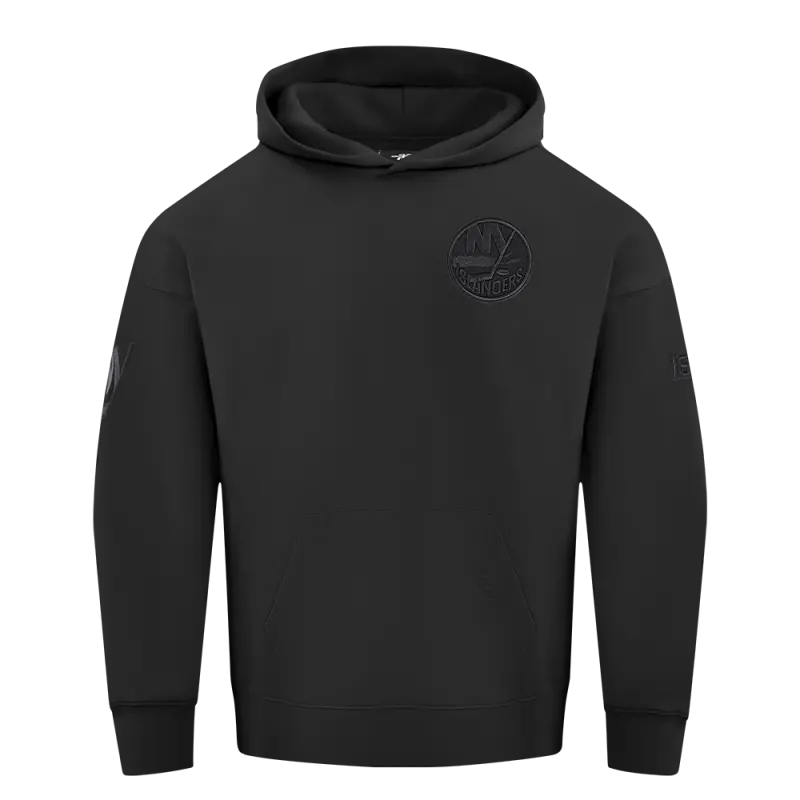 NHL NEW YORK ISLANDERS NEUTRAL MEN’S DROP SHOULDER FLEECE PULLOVER HOODIE (BLACK)