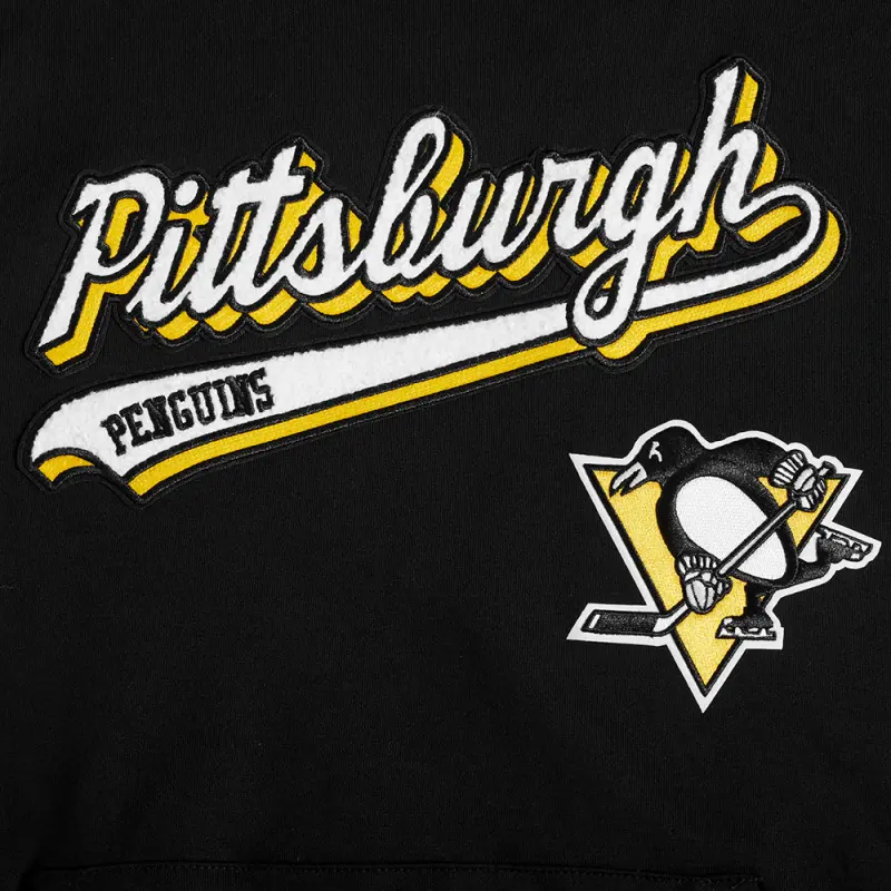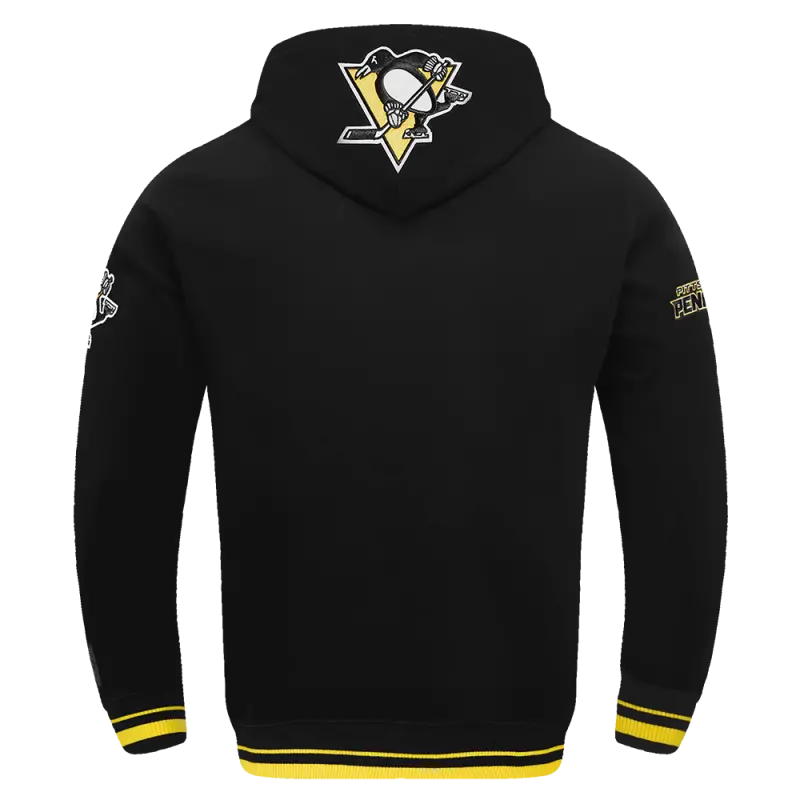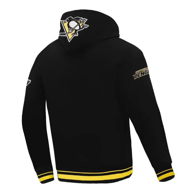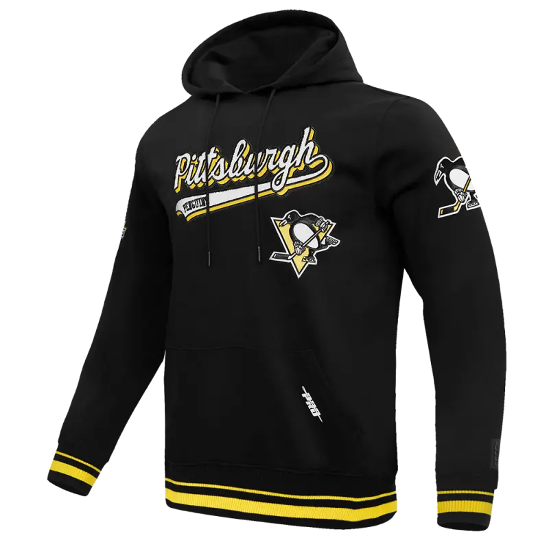 NHL PITTSBURGH PENGUINS SCRIPT TAIL MEN’S RIB FLEECE PULLOVER HOODIE (BLACK\/YELLOW)