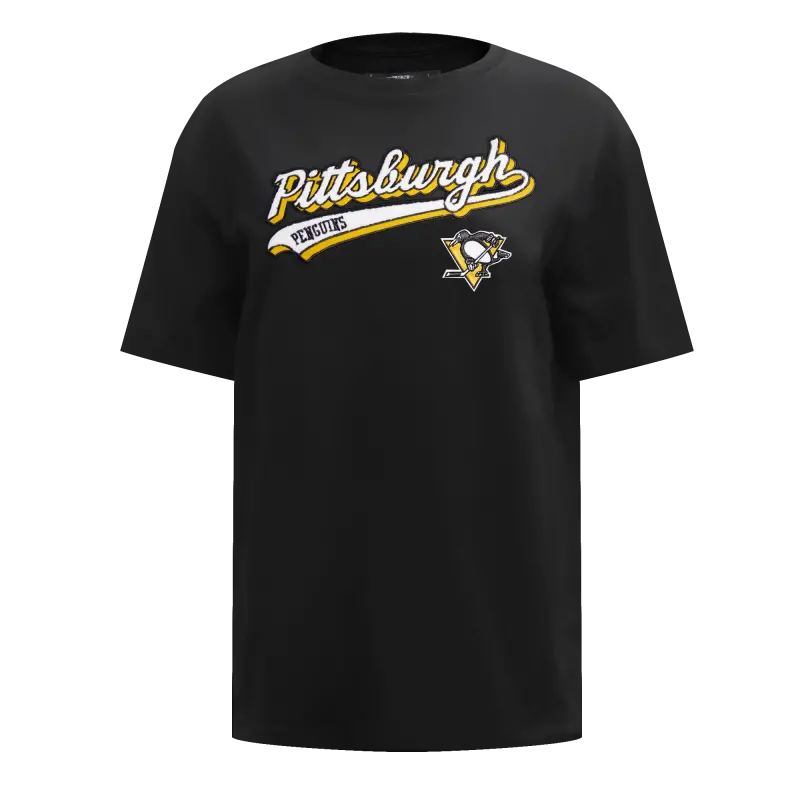 NHL PITTSBURGH PENGUINS SCRIPT TAIL WOMEN’S BOYFRIEND TEE (BLACK)