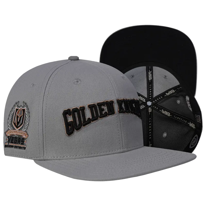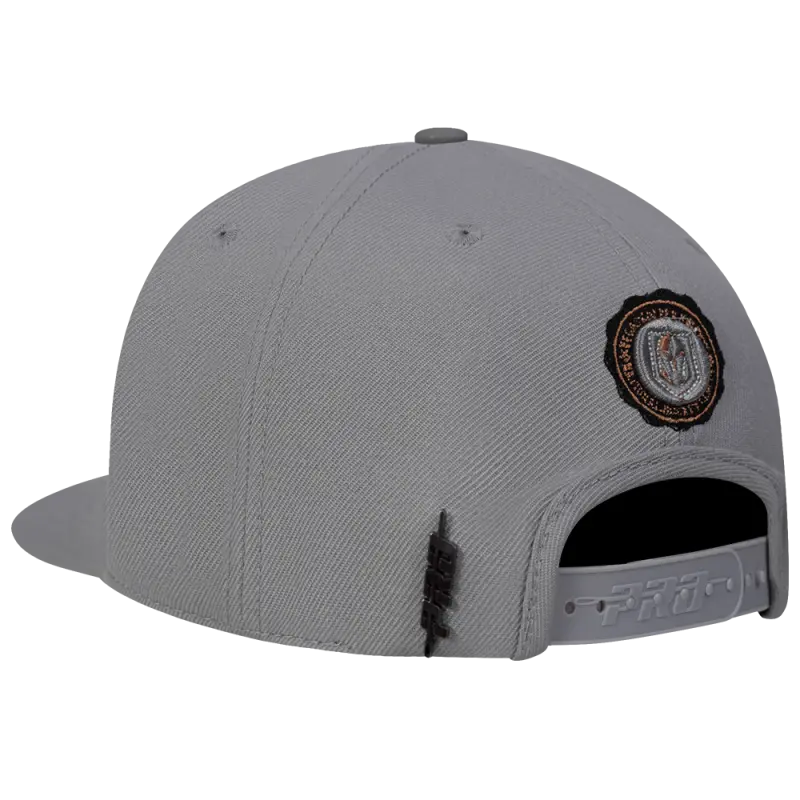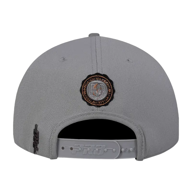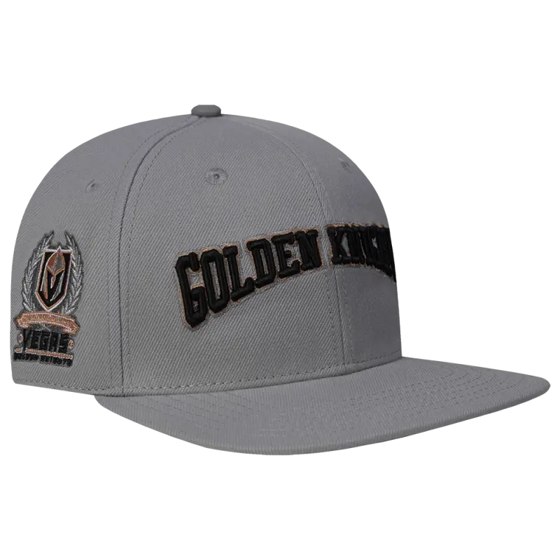 NHL VEGAS GOLDEN KNIGHTS CREST EMBLEM WORDMARK WOOL SNAPBACK HAT (GRAY)